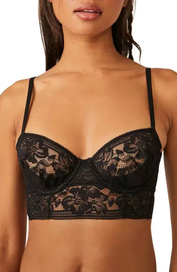 Lacy demi cups create a flirty silhouette for this longline bra complete with supportive underwire.