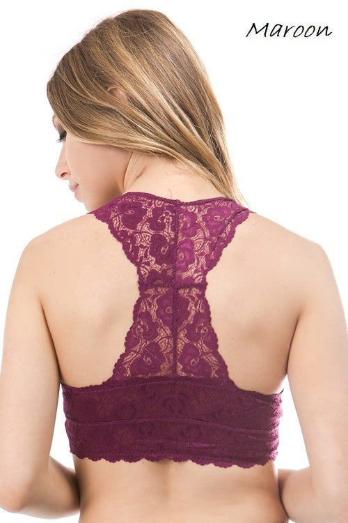 - Gorgeous lace bralette. Lined, low sweetheart neckline,