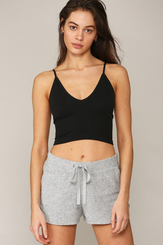 Seamless Ribbed V neck spaghetti brami with plunged back